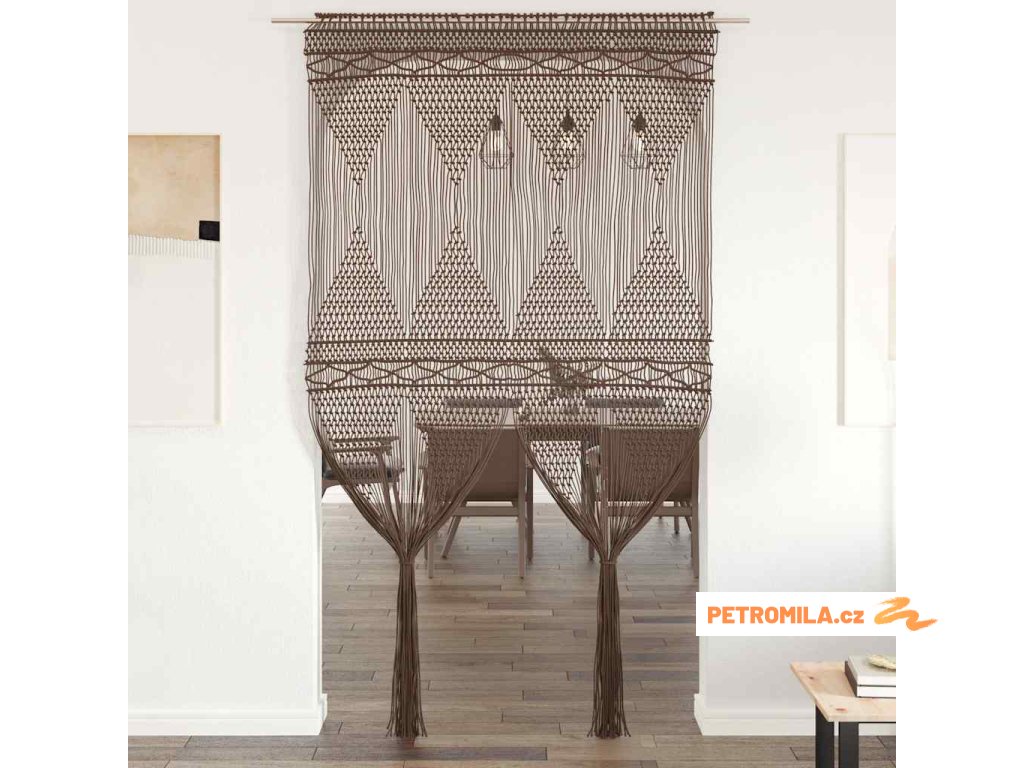 Náš praktický provázkový závěs s macramé představuje skvělý způsob, jak si zkrášlit interiér. Uplatnit ho můžete jako závěs do dveří nebo na okno, jako předěl pokoje či jako pozadí do výlohy.