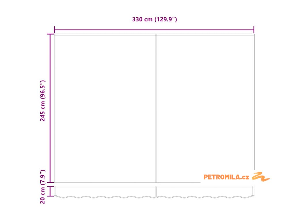 - 1 x Tkanina markýzy: 330 x 245 x 20 cm (D x Š x V)