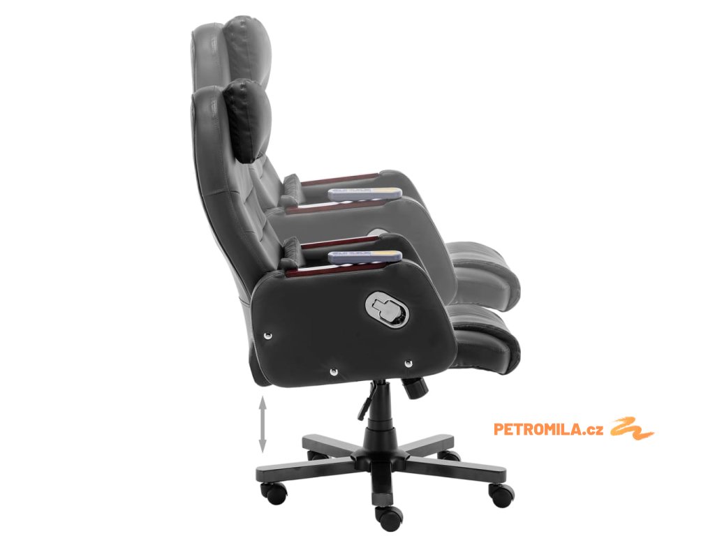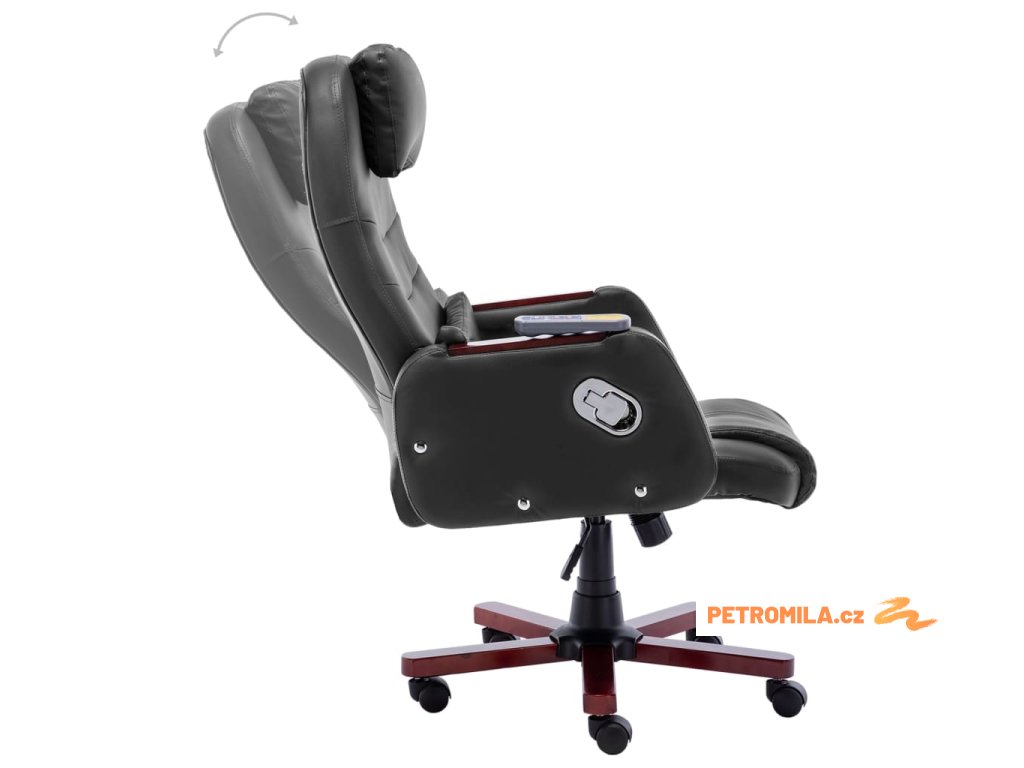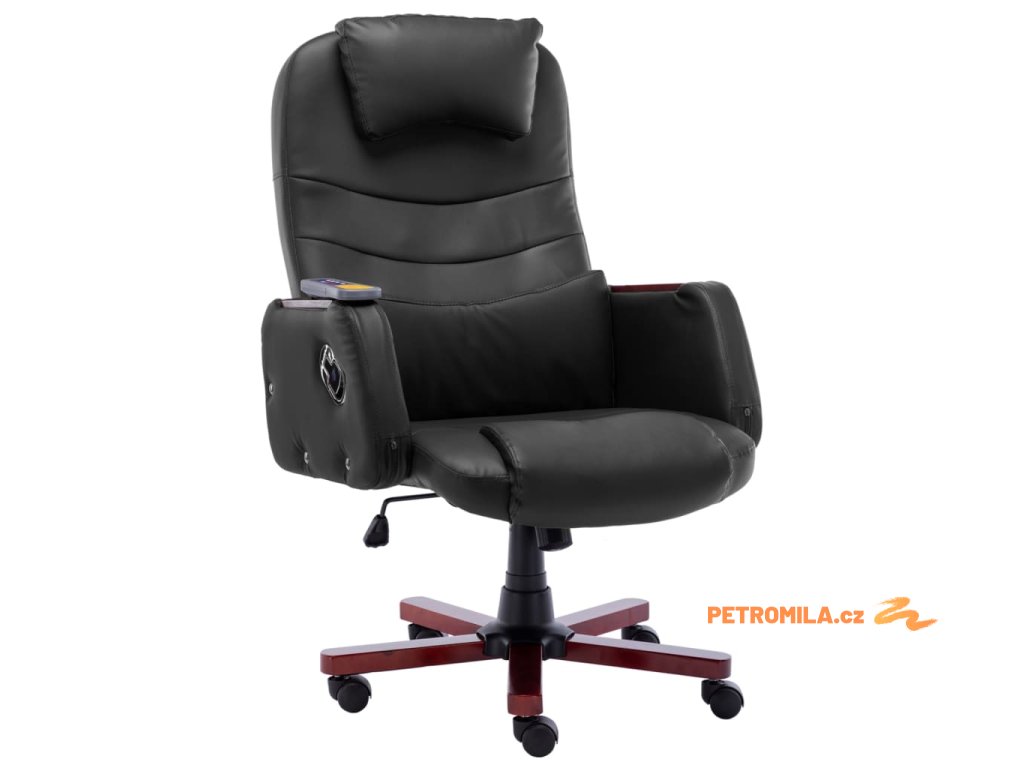 Židle má vysoké opěradlo, područky a pohodlný sedák, aby se vám na ní dobře sedělo i během dlouhých pracovních dnů. Její výšku lze nastavit, takže ji bez problémů přizpůsobíte výšce psacího stolu, a dosáhnete tak maximálního pohodlí i zdravé pozice páteře. Polohovací křeslo je vybavené pojezdovými kolečky pro snadný pohyb. Navíc se dá sklopit do úhlu 95° až 125°, což vám umožní najít si tu nejpříjemnější polohu k odpočinku. Židle k počítači má 4 masážní body na záda a 2 masážní body na hýždě. Disponuje také funkcí vyhřívání pasu.