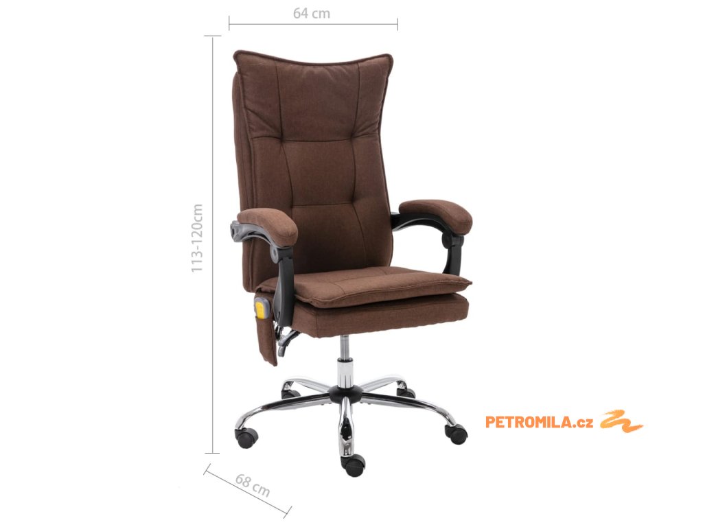 Židle má vysoké opěradlo, zaoblené područky a hustě polstrovaný sedák, aby se vám na ní dobře sedělo i během dlouhých pracovních dnů. Její výšku lze nastavit, takže ji bez problémů přizpůsobíte výšce psacího stolu, a dosáhnete tak maximálního pohodlí i zdravé pozice páteře. Polohovací křeslo je vybavené nylonovými pojezdovými kolečky pro snadný pohyb. Navíc se dá sklopit do úhlu 95° až 150°, což vám umožní najít si tu nejpříjemnější polohu k odpočinku. Židle k počítači má 4 masážní body na záda a 2 masážní body na hýždě. Disponuje také funkcí vyhřívání pasu.