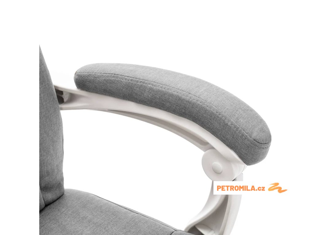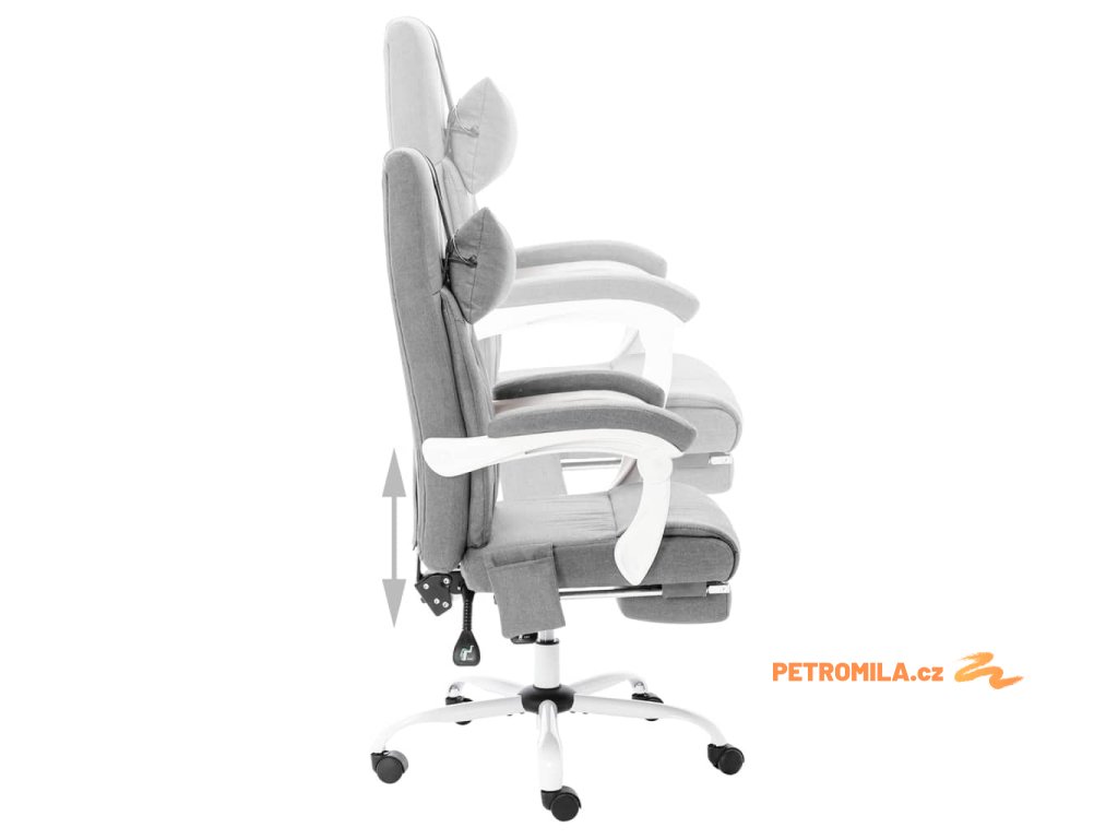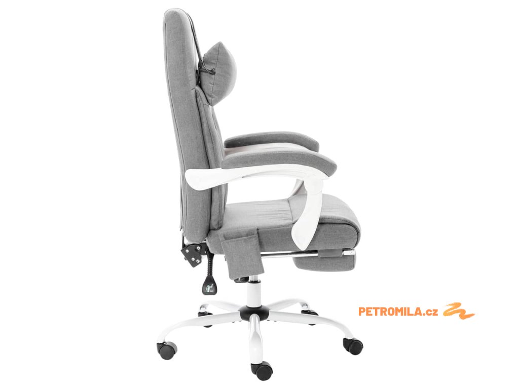 Vyznačuje se vysokým opěradlem a šíjovým polštářem s jednobodovou masáží, zakřivenými loketními opěrkami a silně polstrovaným sedákem, které zajistí pohodlí během dlouhých pracovních dnů. Výškově nastavitelné provedení vám umožní přizpůsobit se výšce stolu a dosáhnout maximálního pohodlí a zdravé pozice páteře. Tato polohovací židle je vybavena nylonovými kolečky, lze jí tedy snadno přemisťovat. Židle se dá sklopit v úhlu od 95° do 135°, takže snadno najdete tu nejpohodlnější polohu.