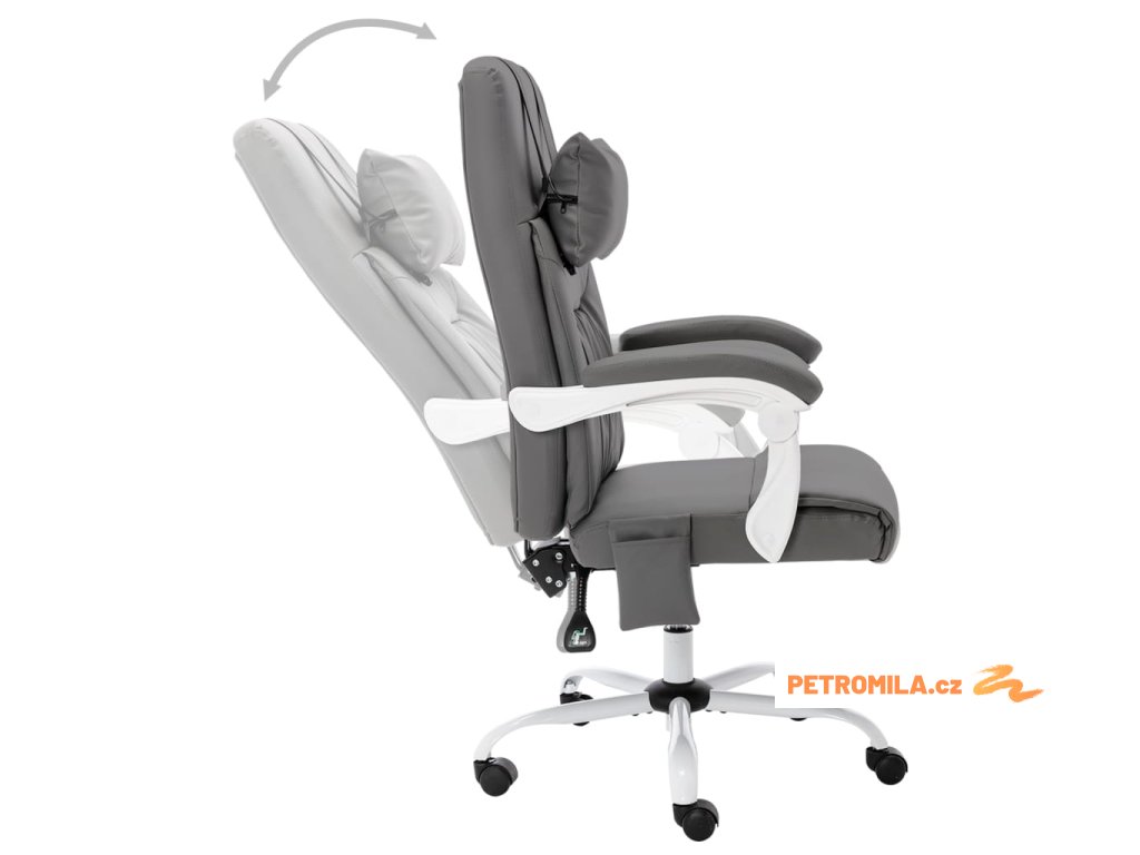 Vyznačuje se vysokým opěradlem a šíjovým polštářem s jednobodovou masáží, zakřivenými loketními opěrkami a silně polstrovaným sedákem, které zajistí pohodlí během dlouhých pracovních dnů. Výškově nastavitelné provedení vám umožní přizpůsobit se výšce stolu a dosáhnout maximálního pohodlí a zdravé pozice páteře. Tato polohovací židle je vybavena nylonovými kolečky, lze jí tedy snadno přemisťovat. Židle se dá sklopit v úhlu od 95° do 135°, takže snadno najdete tu nejpohodlnější polohu.