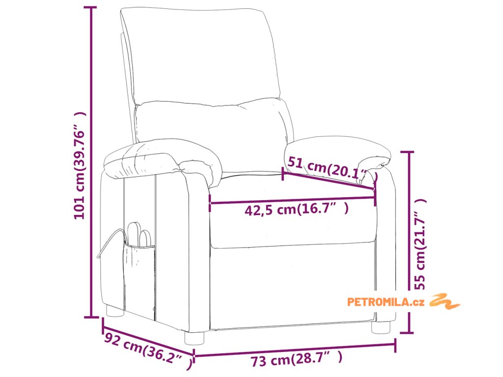 - Rozměry sklopeného křesla: 73 x 142 x 84,5 cm (Š x H x V)