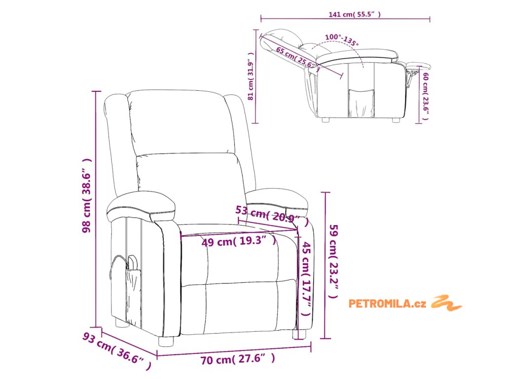 - Rozměry sklopeného křesla: 70 x 141 x 81 cm (Š x H x V)