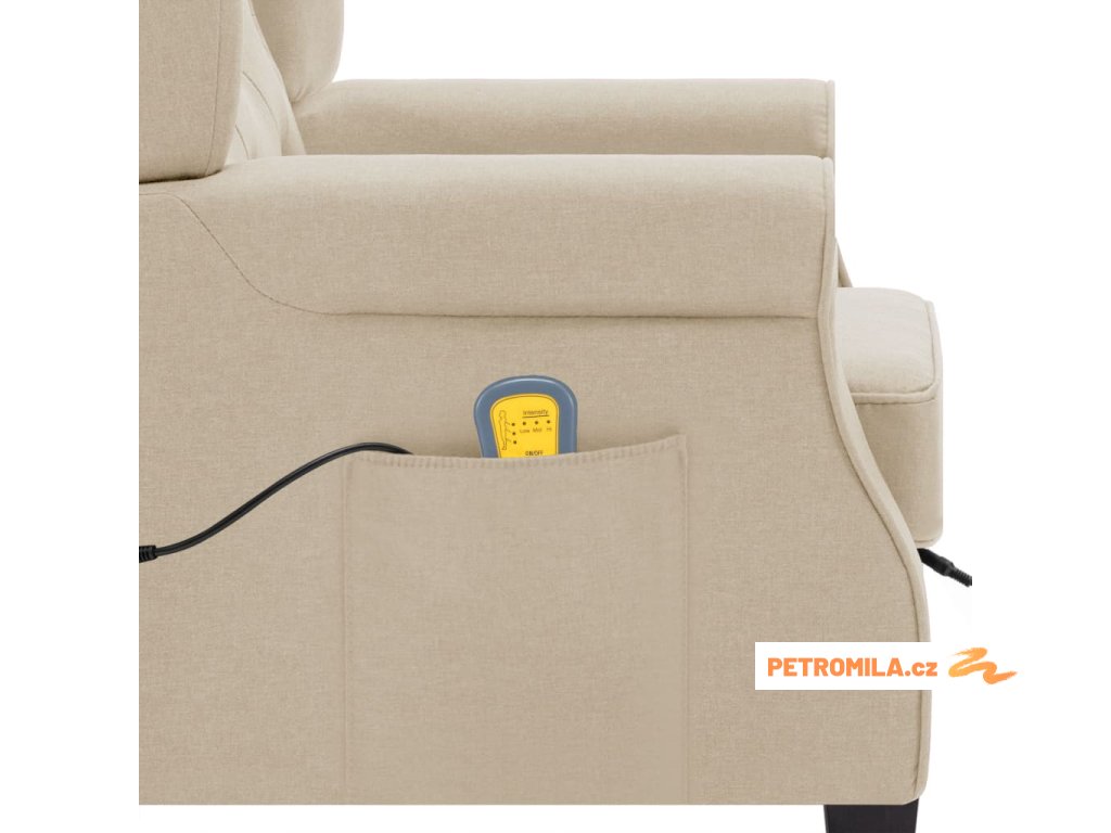Elektrické masážní křeslo je vyrobené z látky a vycpané pěnovým molitanem, je tedy velice odolné a přitom vám zajistí příjemné posezení. Dřevěné nohy zaručují mimořádnou stabilitu nábytku. Ušák má vysoké opěradlo a hluboké podušky pro maximální pohodlí. Disponuje 4 masážními uzly pro záda a hýždě, zatímco 2 další masážní uzly pro nohy se nachází na podnožce. Přiložený dálkový ovladač umožňuje volit mezi různými masážními programy. Masážní TV křeslo je na jedné straně opatřené boční kapsou, kam můžete dálkové ovládání uschovat.