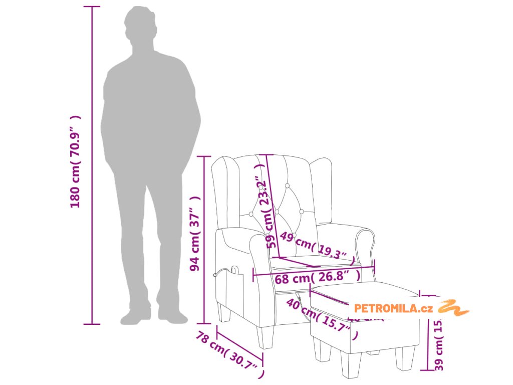 - Rozměry křesla: 68 x 78 x 94 cm (Š x H x V)