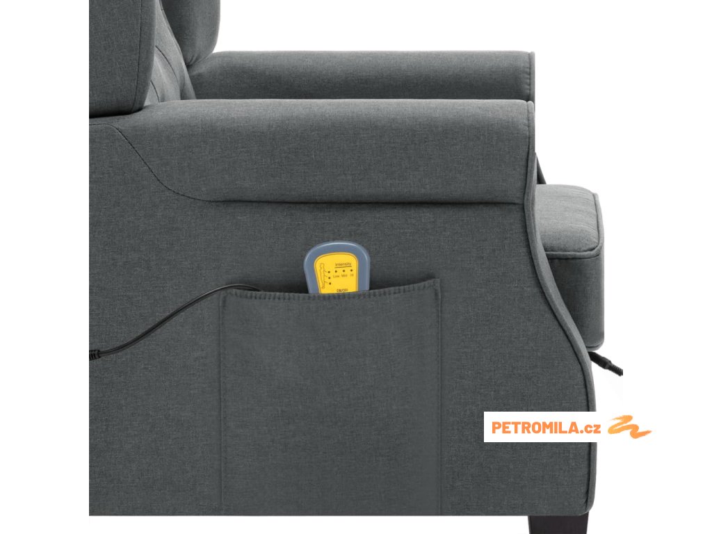 Elektrické masážní křeslo je vyrobené z látky a vycpané pěnovým molitanem, je tedy velice odolné a přitom vám zajistí příjemné posezení. Dřevěné nohy zaručují mimořádnou stabilitu nábytku. Ušák má vysoké opěradlo a hluboké podušky pro maximální pohodlí. Disponuje 4 masážními uzly pro záda a hýždě, zatímco 2 další masážní uzly pro nohy se nachází na podnožce. Přiložený dálkový ovladač umožňuje volit mezi různými masážními programy. Masážní TV křeslo je na jedné straně opatřené boční kapsou, kam můžete dálkové ovládání uschovat.