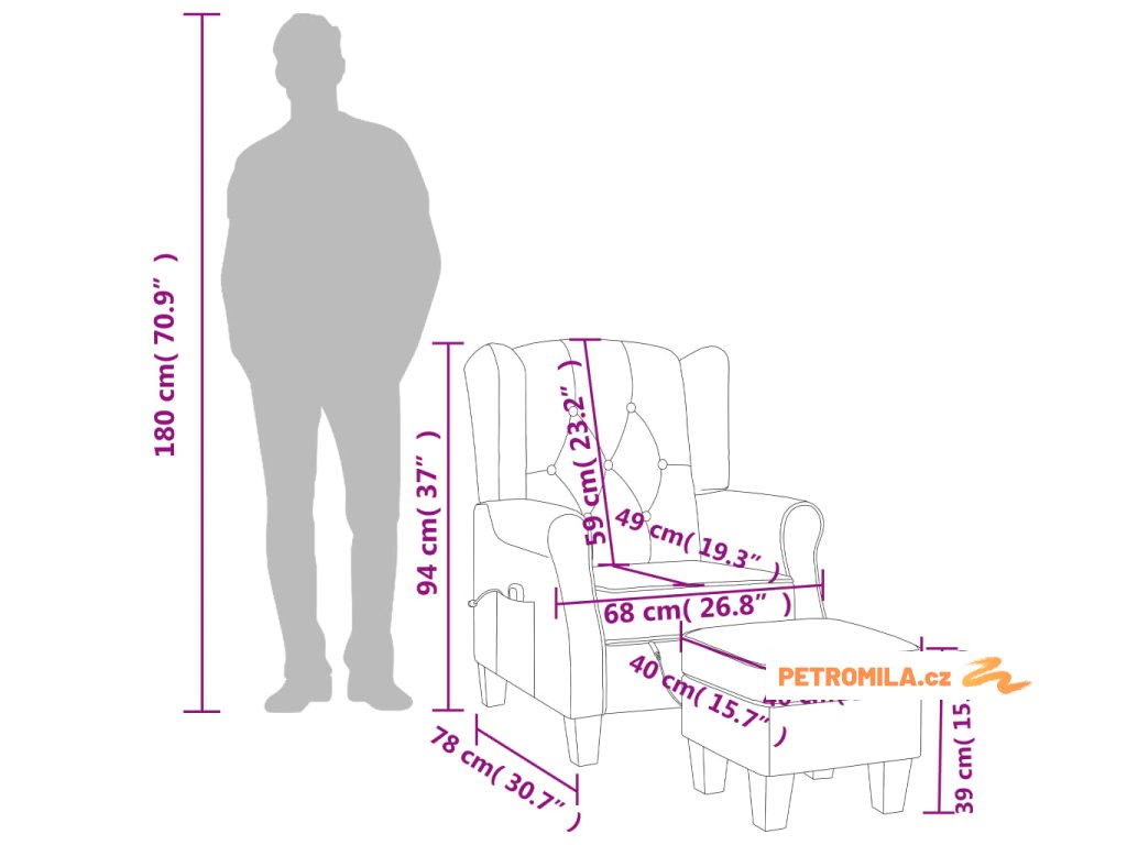 - Rozměry křesla: 68 x 78 x 94 cm (Š x H x V)