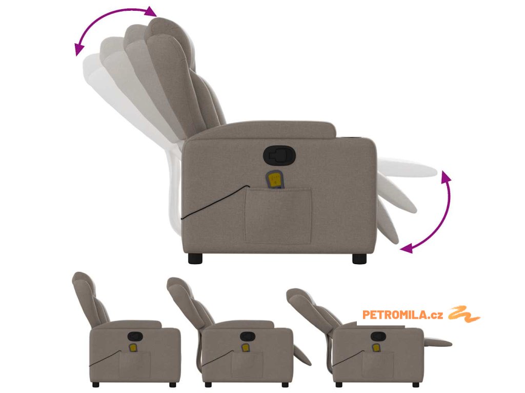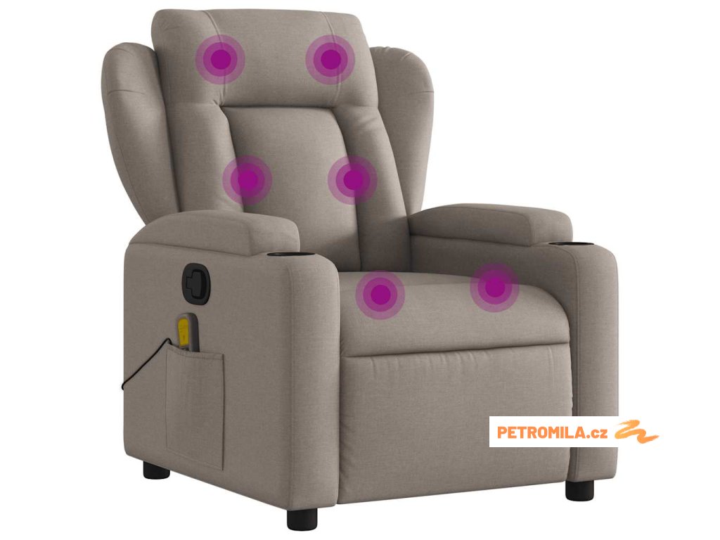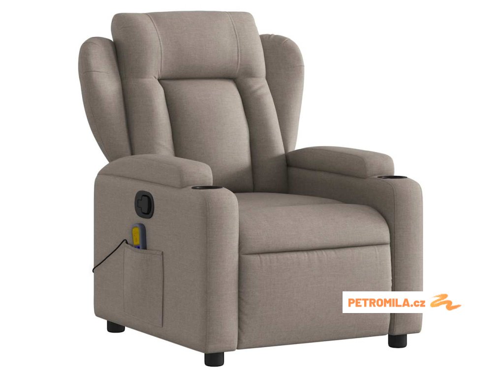 Masážní křeslo s polohovacím mechanismem, béžová látka