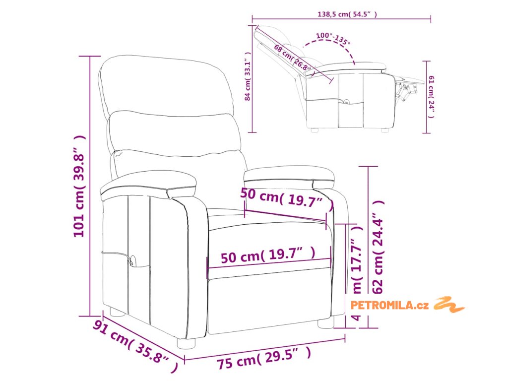 - Rozměry sklopeného křesla: 75 x 138,5 x 84 cm (Š x H x V)