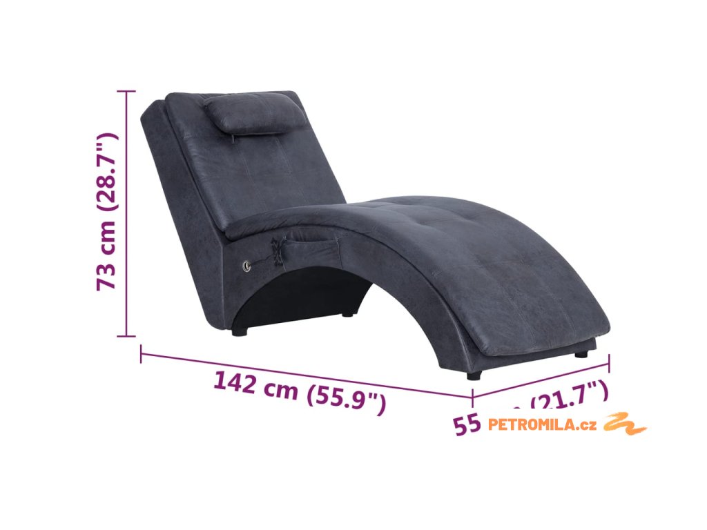 Masážní lenoška s polštářem šedá umělá broušená kůže