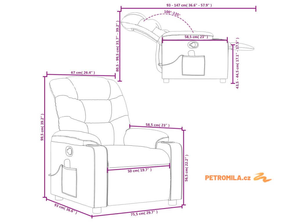 - Funkce ručního sklápění: Toto polohovací křeslo má na pravé straně páčku. Jednoduchým zatažením za páčku můžete ručně nastavit opěrku nohou a opěradlo do libovolné polohy podle svého pohodlí. Tato funkce umožňuje maximální náklon 135 stupňů. Opěradlo se navíc může snadným zatažením za páčku rychle vrátit do původní polohy.