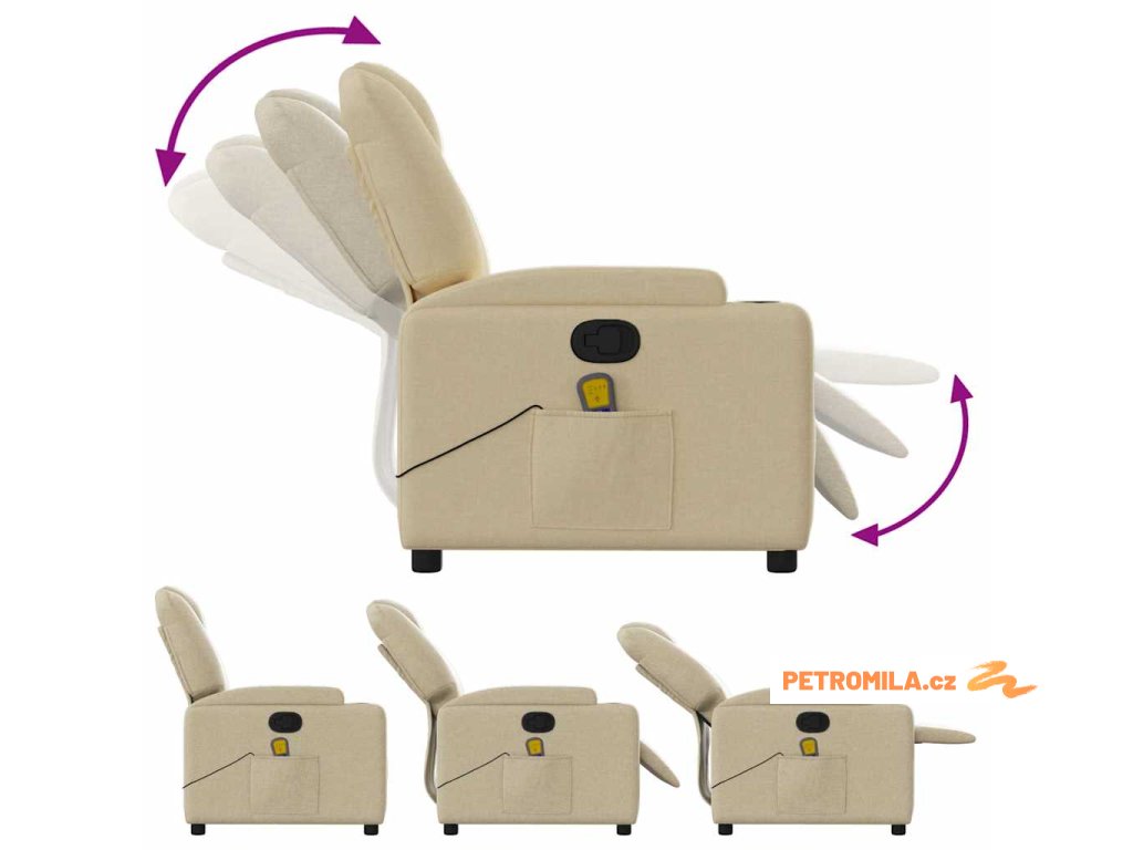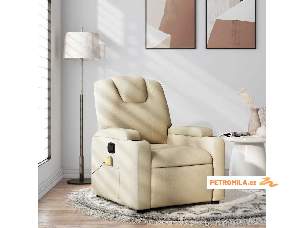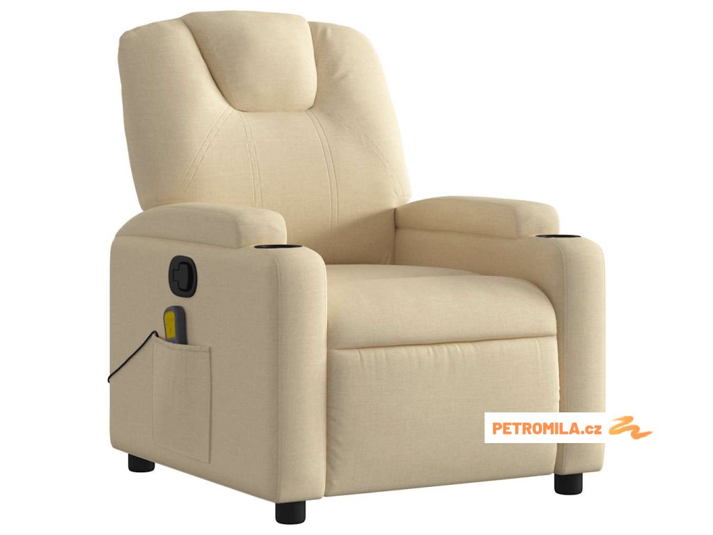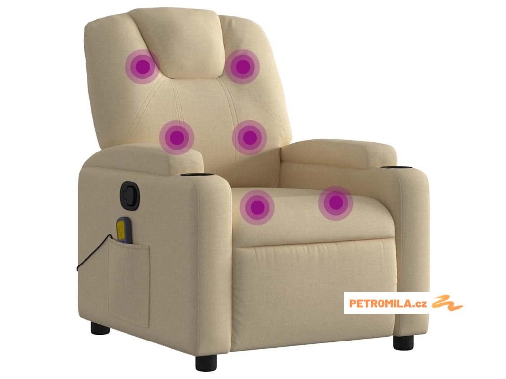 Masážní polohovací křeslo krémové textil