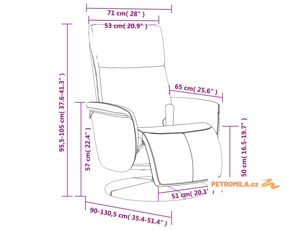 - Rozměry sklopeného křesla: 71 x 130,5 x 95,5 cm (Š x H x V)
