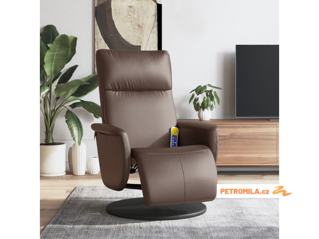 Masážní polohovací křeslo s podnožkou hnědé umělá kůže