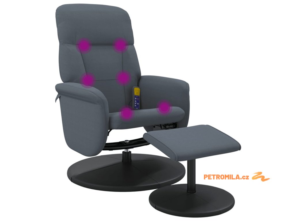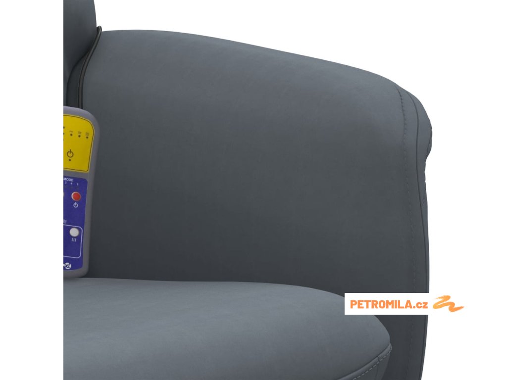 Masážní polohovací křeslo s podnožkou tmavě šedé samet