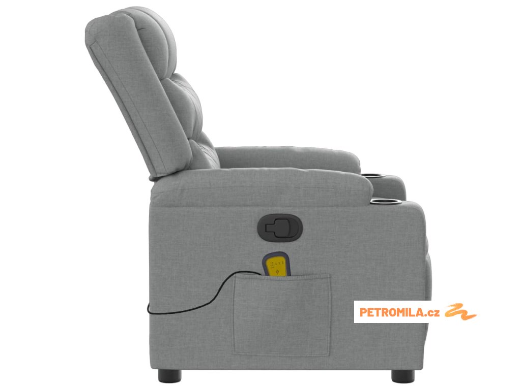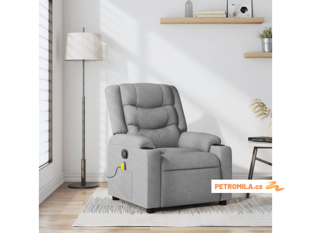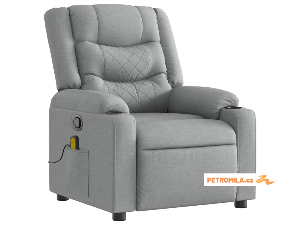 Masážní polohovací křeslo světle šedé textil