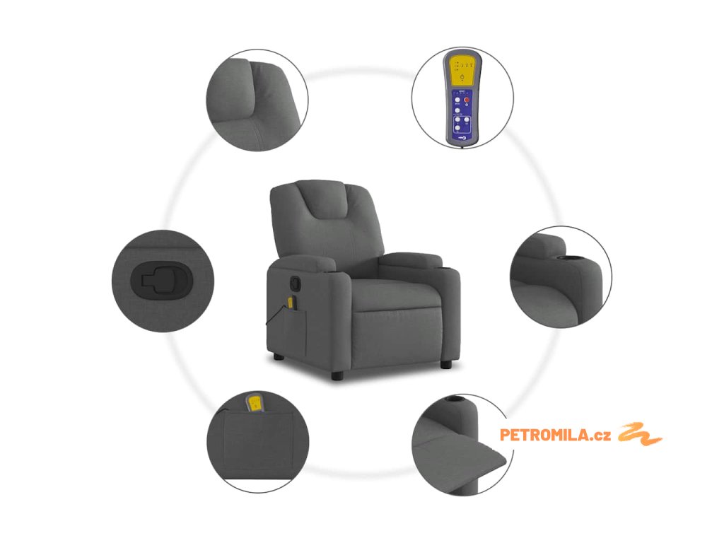 - Praktické držáky na nápoje a boční kapsa: Křeslo má dva praktické držáky na nápoje a boční kapsu na dálkové ovládání nebo jiné nezbytnosti, které budete mít snadno po ruce.