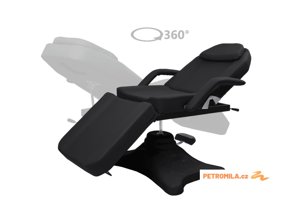 Podušky na podnožce, sedáku a opěradle jsou polstrované hustým pěnovým molitanem a čalouněné pohodlným PVC materiálem, takže toto kosmetické křeslo zaručuje dlouhotrvající odolnost. Jeho lehký design poskytuje veškeré pohodlí kosmetického lehátka a maximální flexibilitu. Podstavec z FRP (plast vyztužený vlákny) zaručuje salónnímu lehátku vysokou stabilitu. Je vybavené plynovým zvedacím mechanismem a odnímatelnou loketní opěrkou. Má také nastavitelné opěradlo a opěrku nohou. Masážní stůl se může otáčet o 360 stupňů.