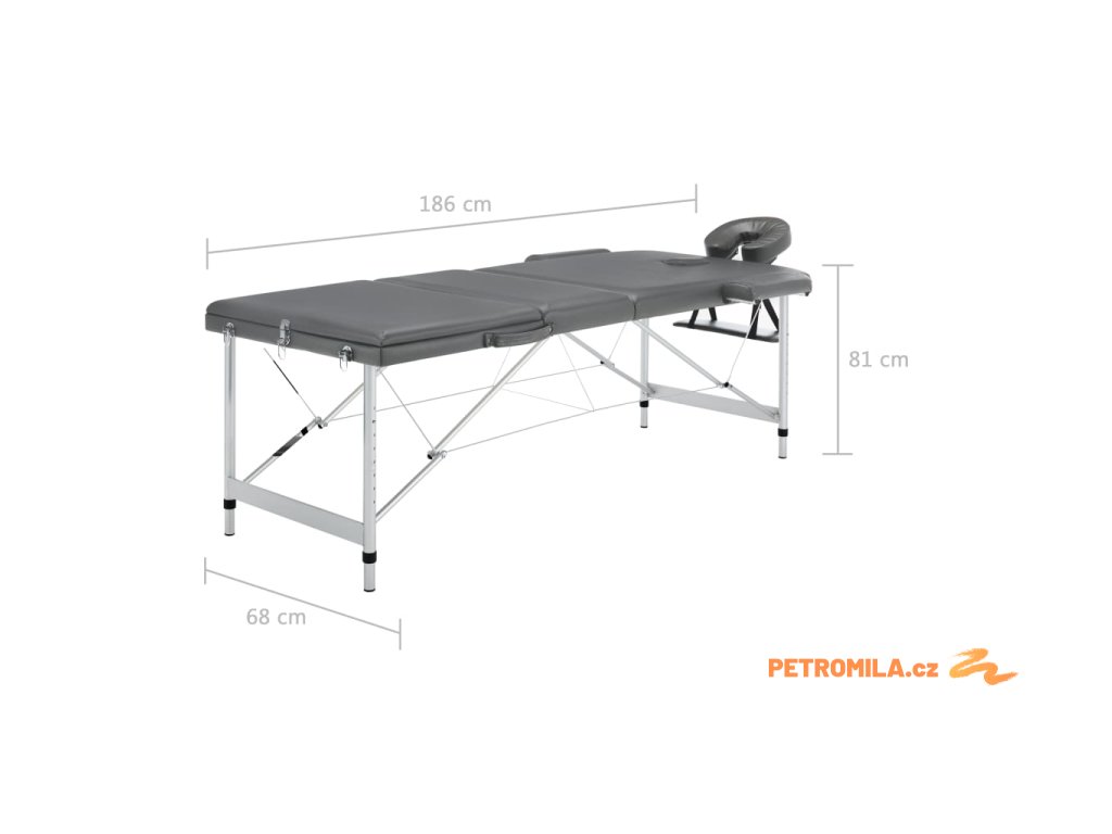 Masážní stůl se 3 zónami hliníkový rám antracitový 186 x 68 cm