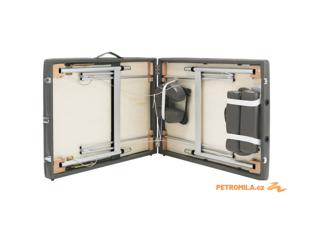 Tento skládací masážní stůl se 3 zónami a hliníkovým rámem se výborně hodí k masážím, shiatsu a reiki.