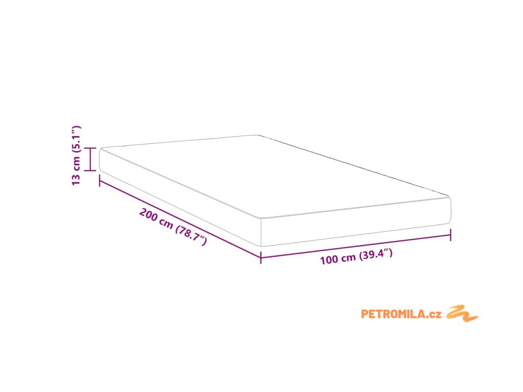 - Celkové rozměry: 200 x 100 x 13 cm (D x Š x V)