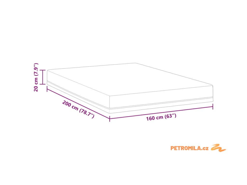 - Celkové rozměry: 200 x 160 x 20 cm (D x Š x V)