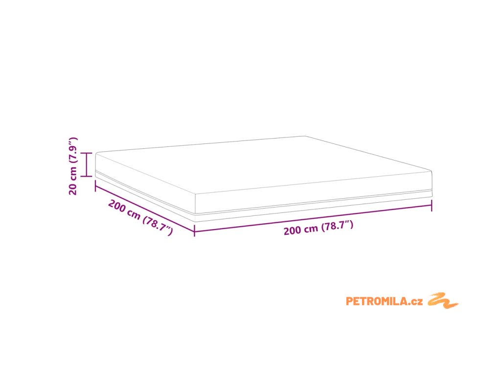 - Celkové rozměry: 200 x 200 x 20 cm (D x Š x V)