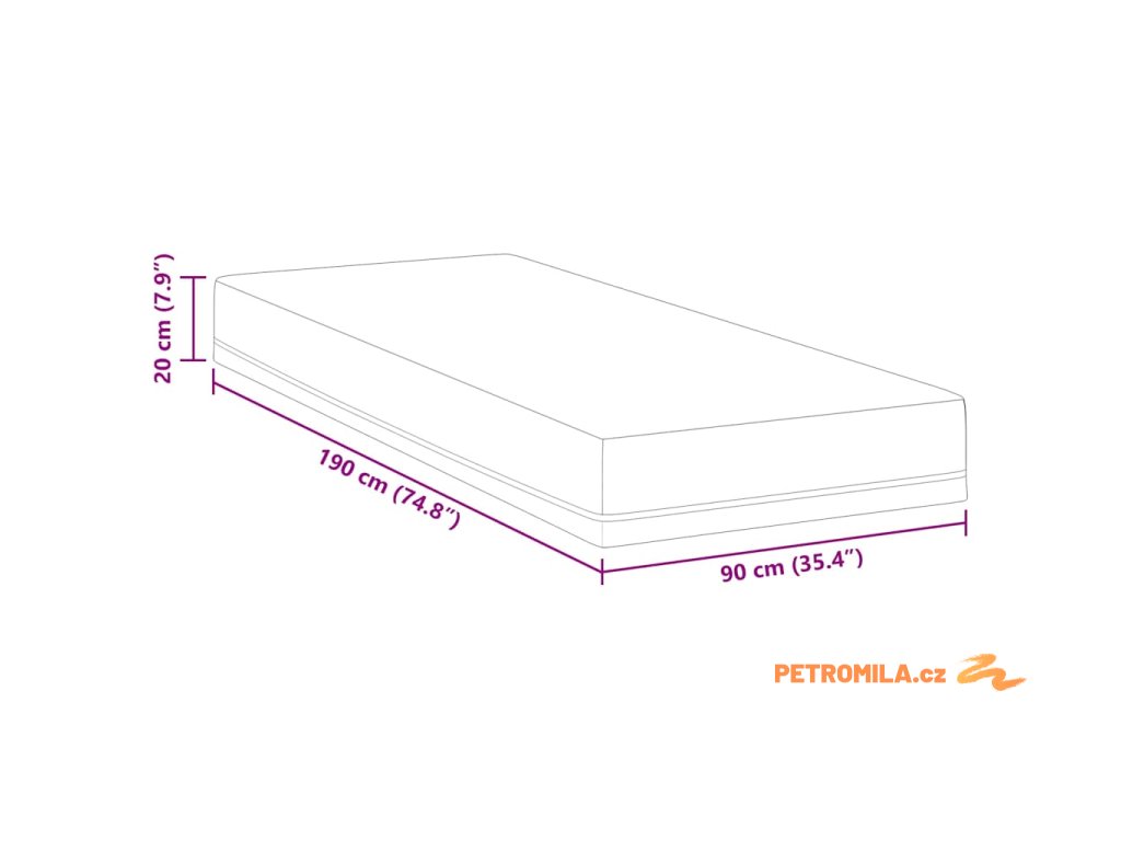 - Celkové rozměry: 190 x 90 x 20 cm (D x Š x V)