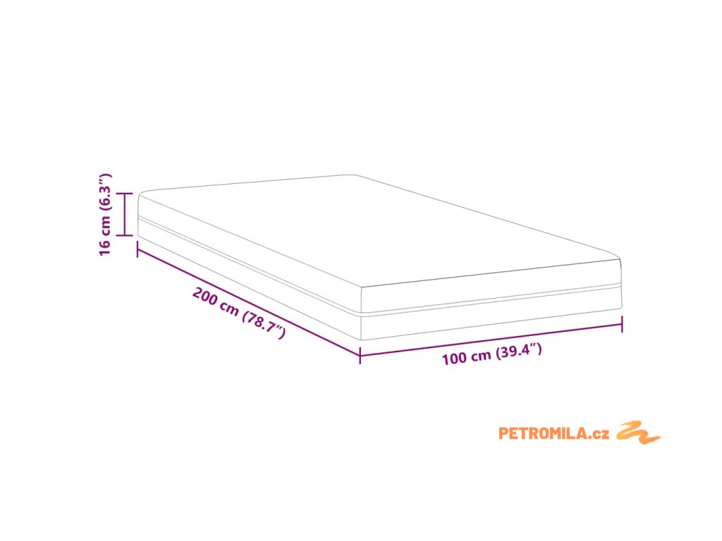 - Celkové rozměry: 200 x 100 x 16 cm (D x Š x V)