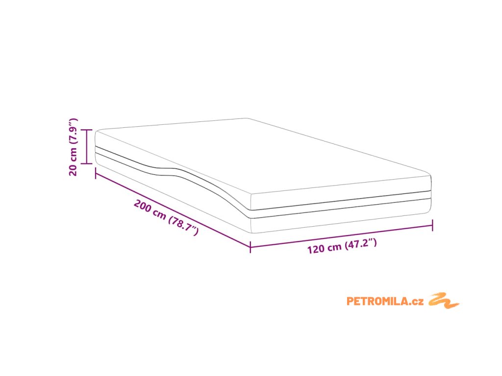 - Celkové rozměry: 200 x 120 x 20 cm (D x Š x V)