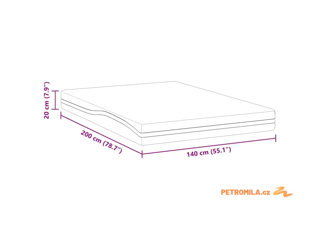 - Celkové rozměry: 200 x 140 x 20 cm (D x Š x V)