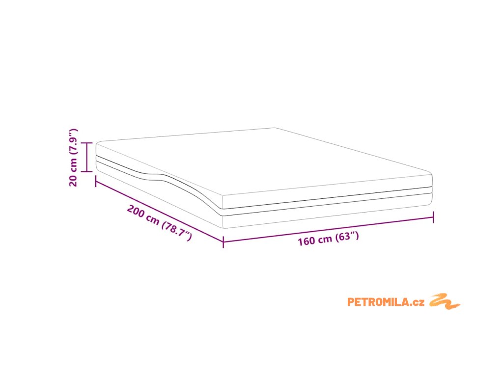 - Celkové rozměry: 200 x 160 x 20 cm (D x Š x V)