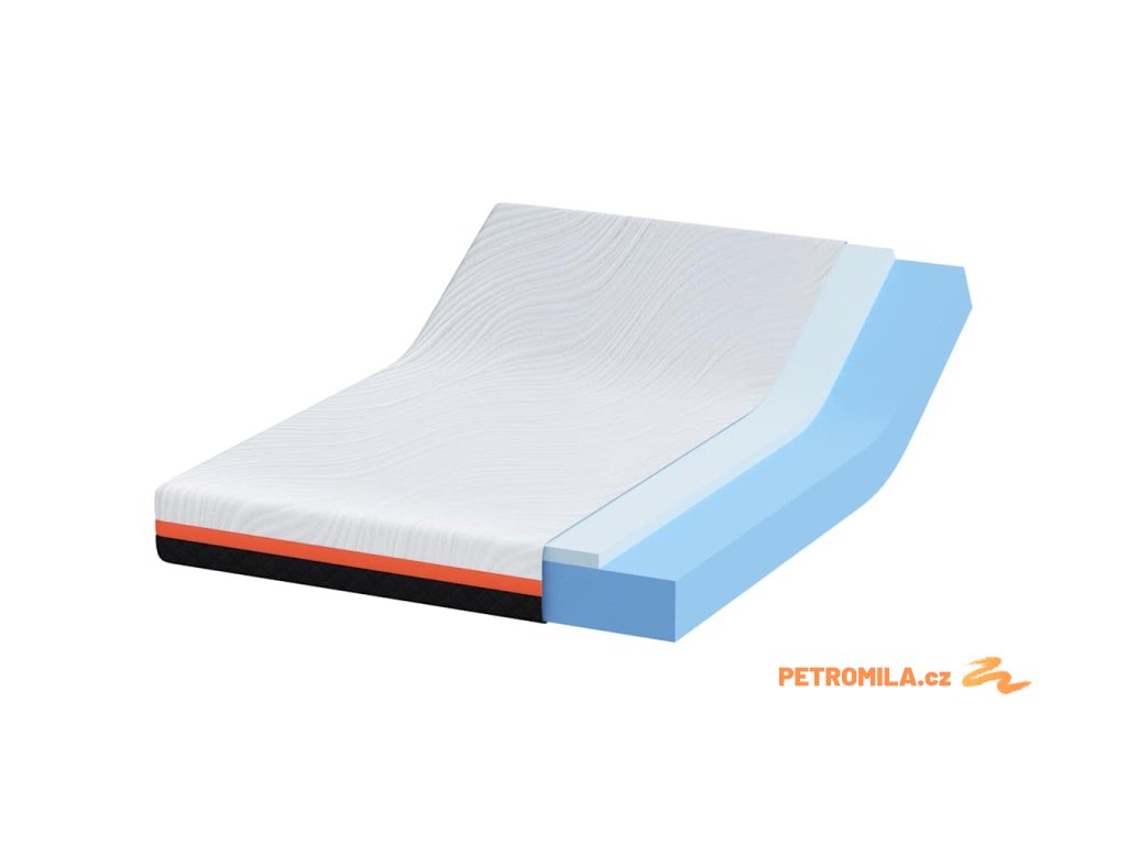 - Gelová pěna s chladicím účinkem: Matraci tvoří gelová paměťová pěna, která udržuje teplotu ideální pro chladný spánek. Tento materiál rychle odvádí teplo, takže je ti příjemně i v teplých nocích. Její tvar dodává na luxusu, pokaždé když si lehneš.