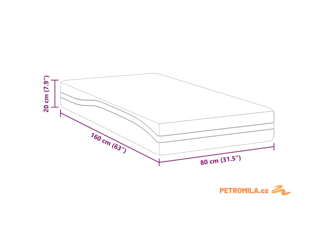 - Celkové rozměry: 160 x 80 x 20 cm (D x Š x V)