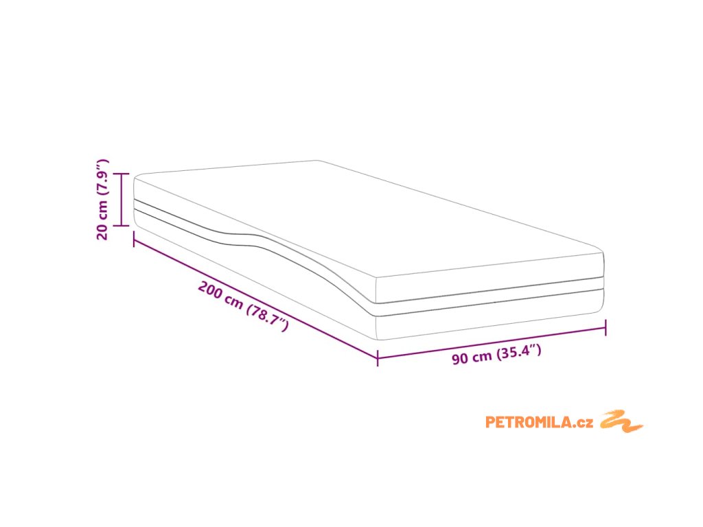 - Celkové rozměry: 200 x 90 x 20 cm (D x Š x V)