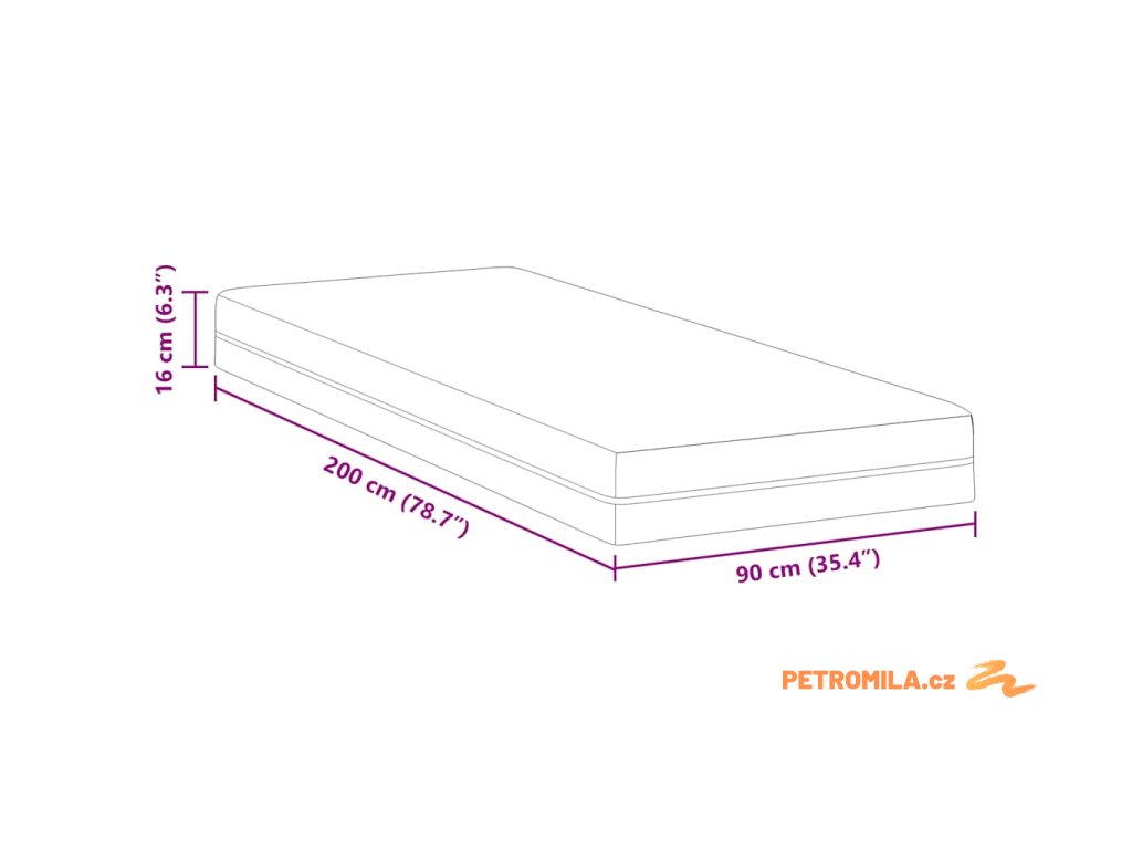 - Celkové rozměry: 200 x 90 x 16 cm (D x Š x V)