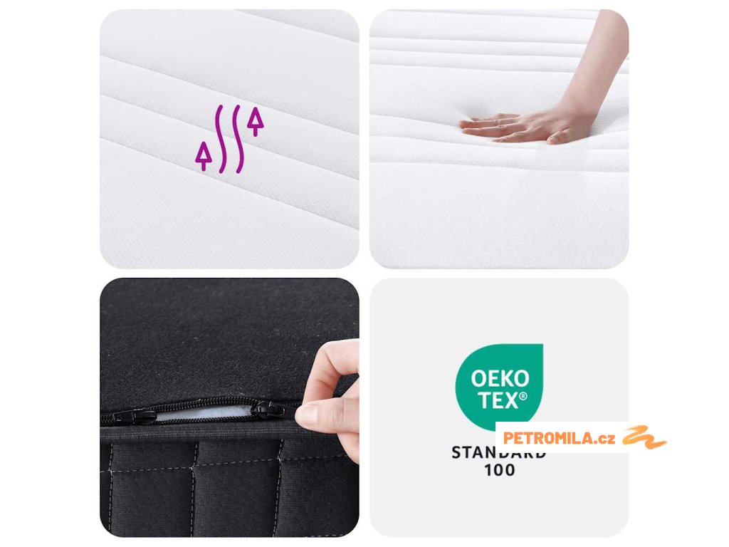 - Snadná údržba: Pružinová pěnová matrace je ve spodní části vybavena dlouhým zipem, který umožňuje snadné sejmutí potahu pro vyprání.