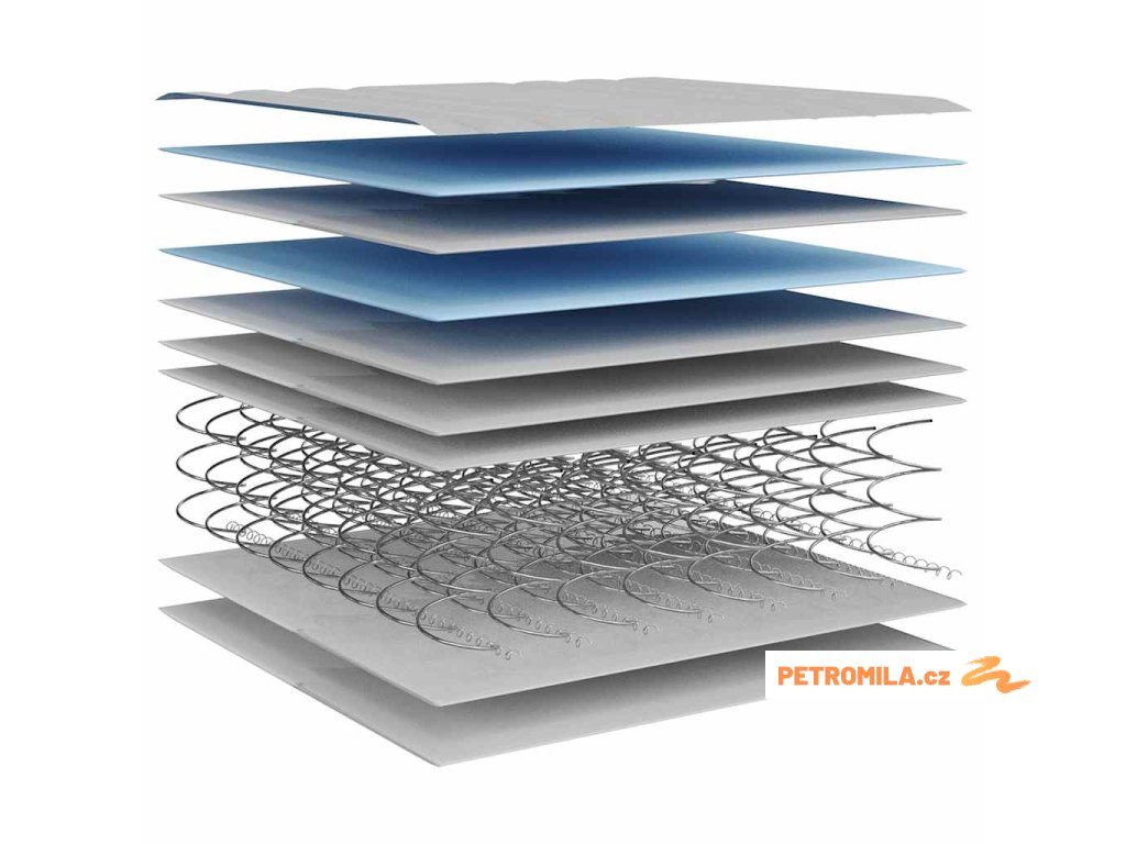 - Výplňový materiál: bonellové pružiny, pěnový molitan, izolační podložka