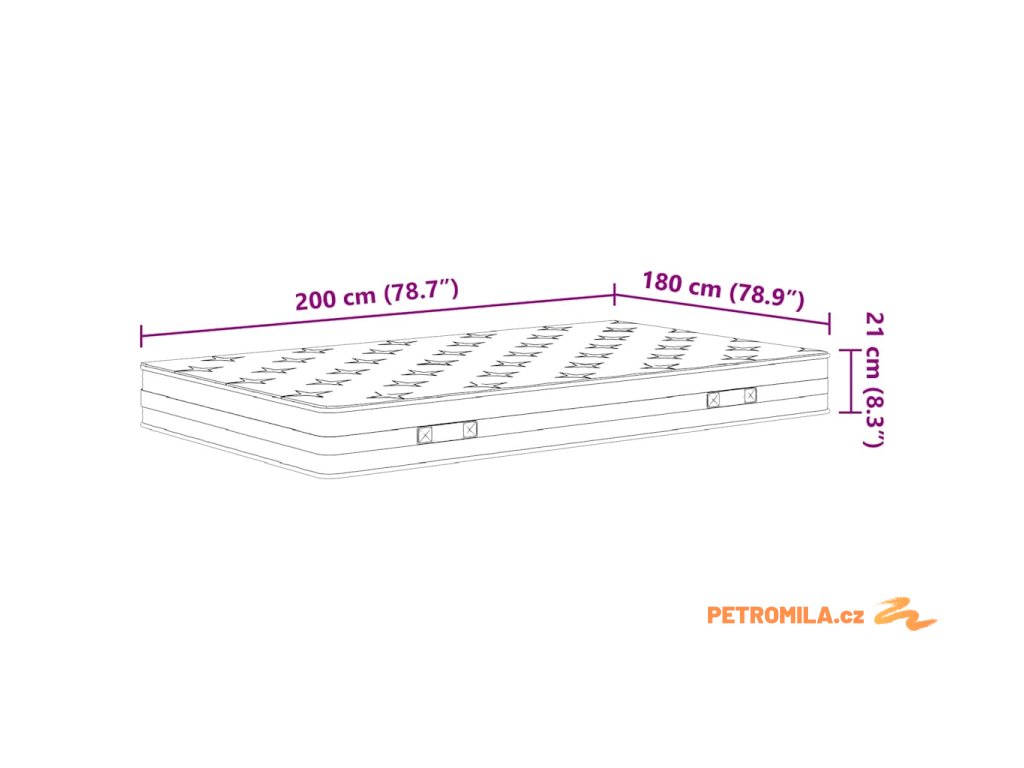 - Rozměry: 180 x 200 x 21 cm (Š x D x T)