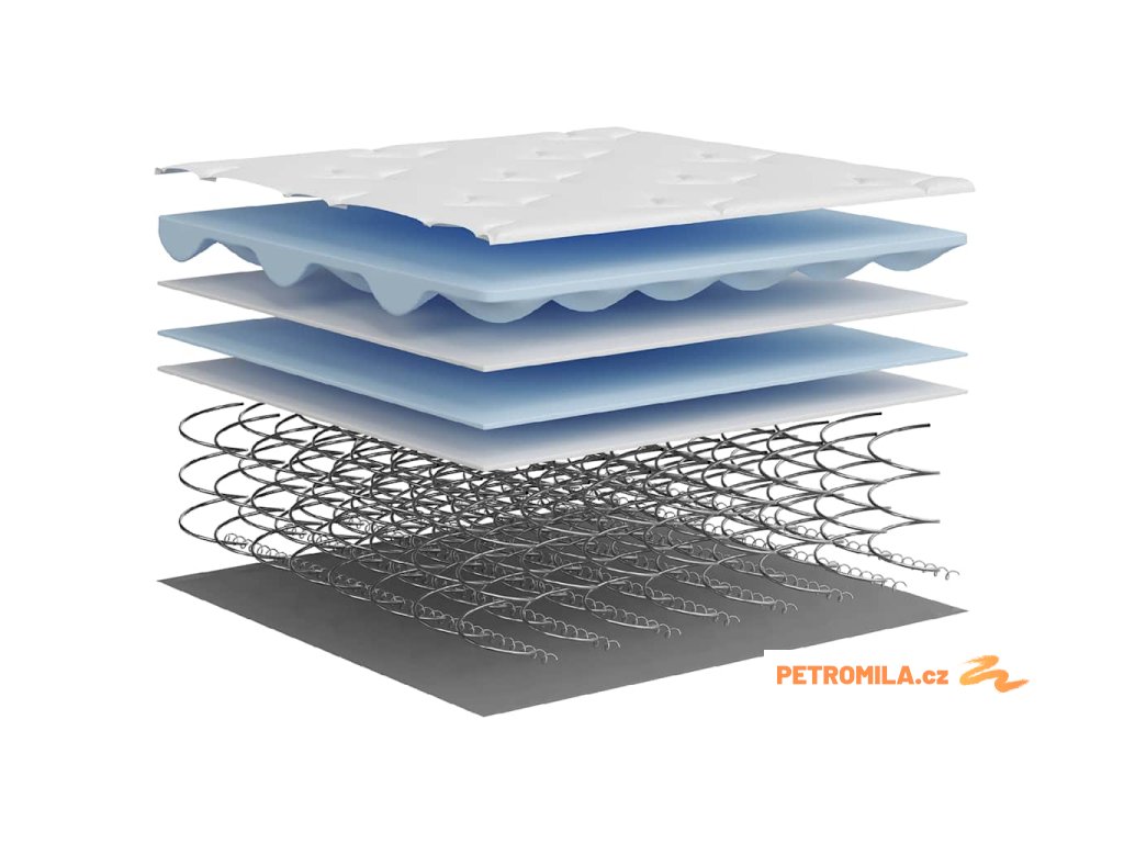 - Výplňový materiál: bonellové pružiny, pěnový molitan, izolační podložka
