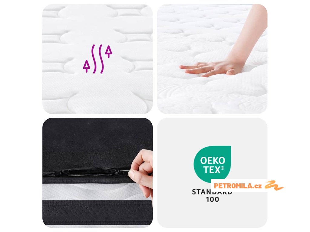 - Snadná údržba: Pružinová pěnová matrace je ve spodní části vybavena dlouhým zipem, který umožňuje snadné sejmutí potahu pro vyprání.