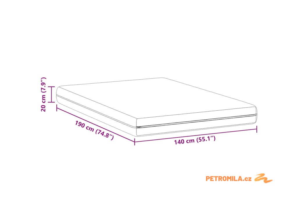 - Celkové rozměry: 190 x 140 x 20 cm (D x Š x V)