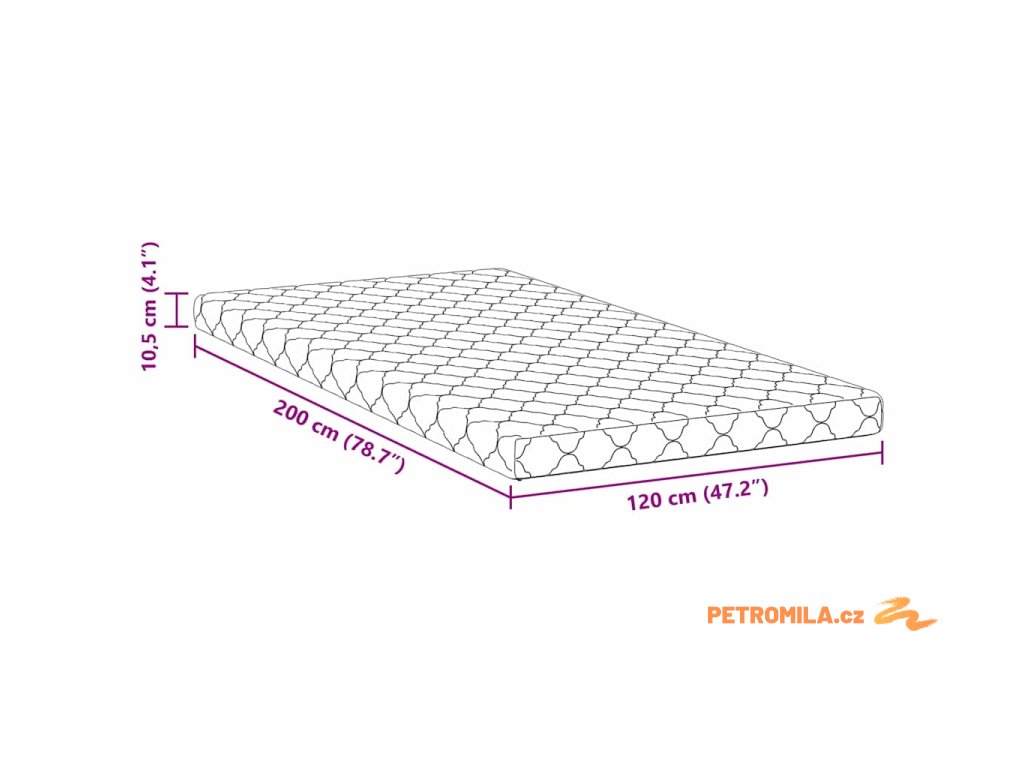 - Celkové rozměry: 200 x 120 x 10,5 cm (D x Š x V)