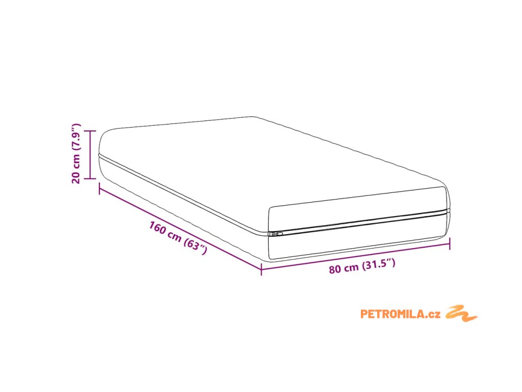 - Celkové rozměry: 160 x 80 x 20 cm (D x Š x V)