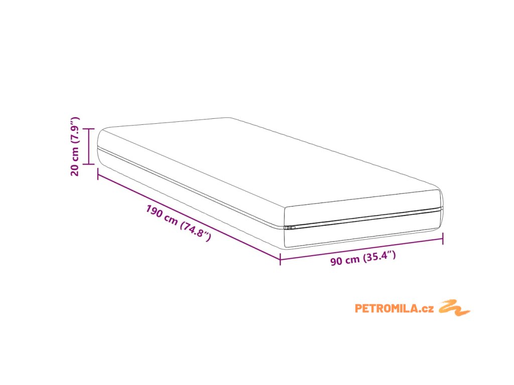 - Celkové rozměry: 190 x 90 x 20 cm (D x Š x V)