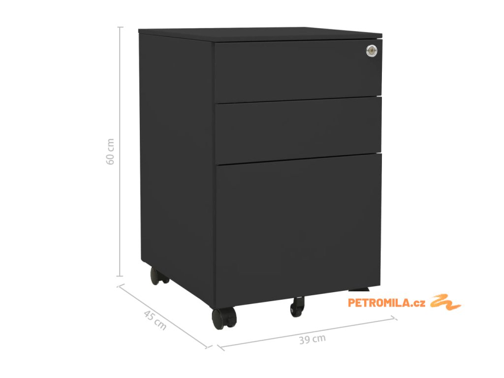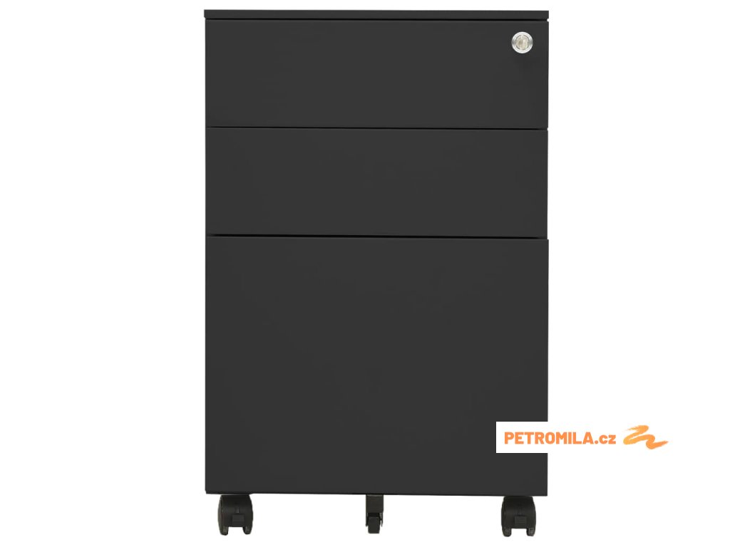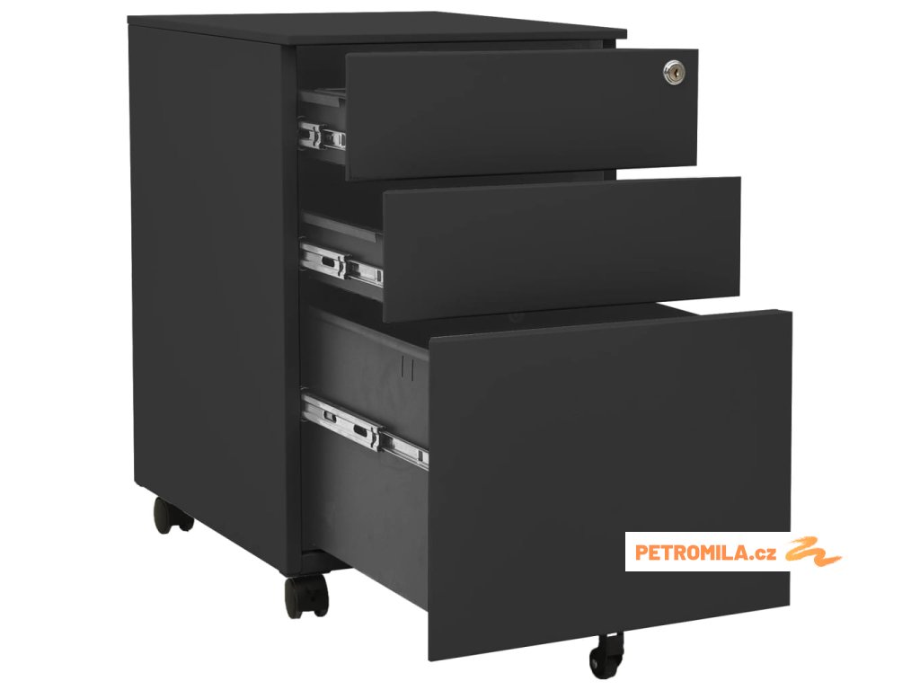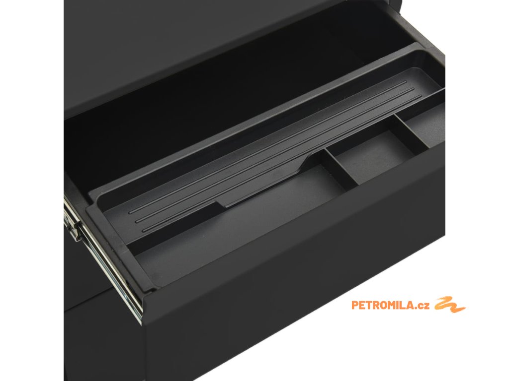 Tato kartotéka je vyrobena z oceli, takže je odolná a snadno se čistí. Disponuje 3 zásuvkami a zámky, takže můžete přehledně třídit soubory do různých kategorií a mít je bezpečně uložené. Každá zásuvka je vybavena 1 odnímatelnou závěsnou tyčí, kterou lze libovolně kombinovat pro uložení souborů formátů letter, legal a závěsné desky velikosti A4. Pojízdná skříňka má zásobník na tužky, se kterým snadno udržíte na stole pořádek. Zásuvky s třídílnými pojezdy s kuličkovými ložisky zajišťují plynulé otevírání a zavírání, i při zvýšené zátěži se zásuvky dají zcela vysunout.