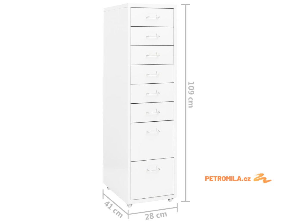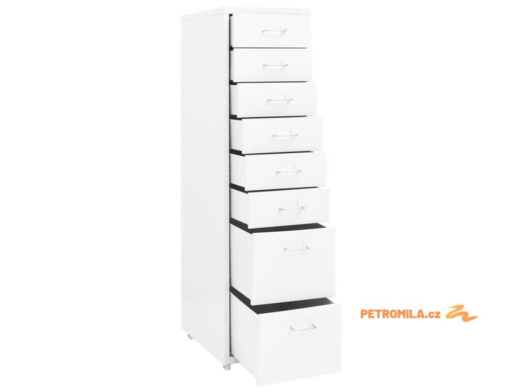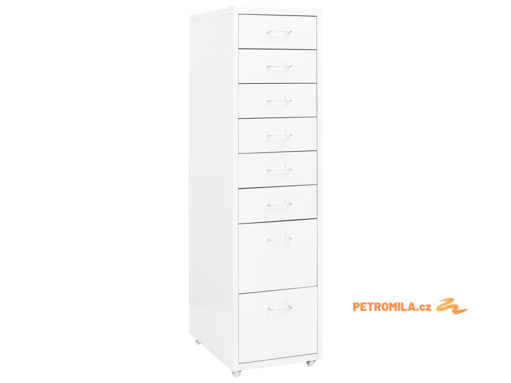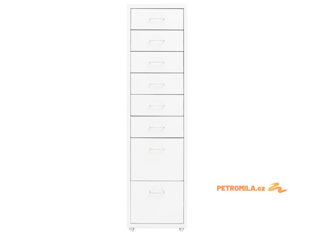 Tato kancelářská skříňka je zhotovena z kovu, je tedy odolná a snadno se čistí. Kartotéka má 8 zásuvek a do kovových úchytů můžete vložit jmenovky, takže budete moct vaše složky přehledně třídit do různých kateogorií. 4 kolečka vám usnadní přesouvání této skříňky z místa na místo. Její ikonický design skvěle zapadne do každé kanceláře. Skříň se navíc snadno čistí vlhkým hadříkem.