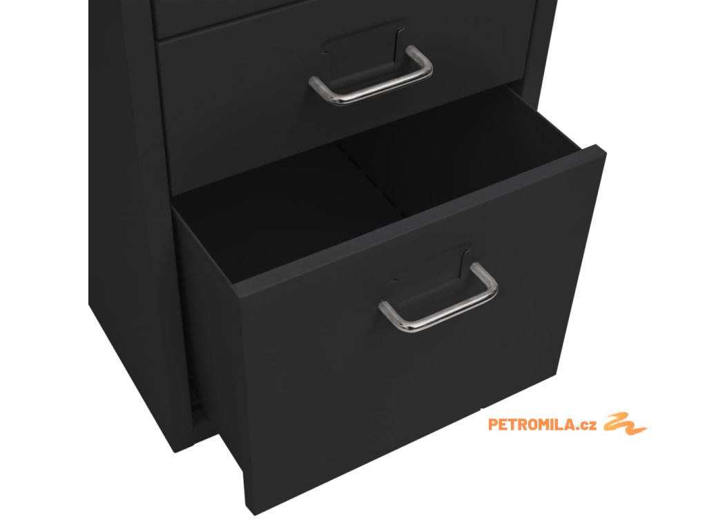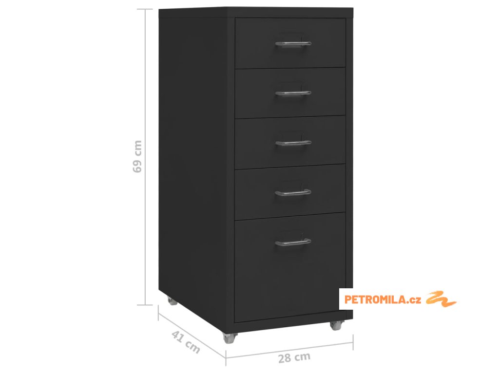 Tato kancelářská skříňka je zhotovena z kovu, je tedy odolná a snadno se čistí. Kartotéka má 5 zásuvek a do kovových úchytů můžete vložit jmenovky, takže budete moct vaše složky přehledně třídit do různých kateogorií. 4 kolečka vám usnadní přesouvání této skříňky z místa na místo. Její ikonický design skvěle zapadne do každé kanceláře. Skříň se navíc snadno čistí vlhkým hadříkem.