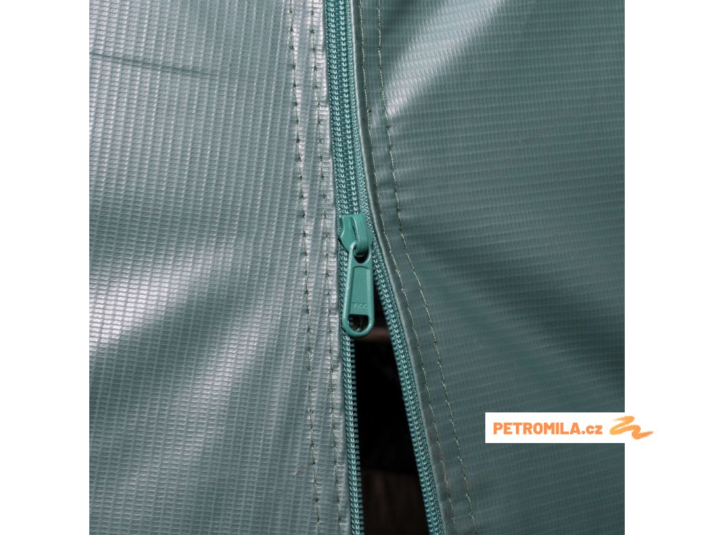 Povrch a postranní stěny přístřešku pro zvířata jsou vyrobeny ze 100% PVC materiálu, který je voděodolný a chrání před UV zářením. Součástí jsou 2 vchodové prostory, oba se zapínacími a srolovatelnými dveřmi, které umožňují snadný vstup zvířatům různých velikostí. Rám je vyrobený z nerezové oceli, a je tudíž vysoce odolný.
